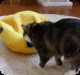 猫ベッドの中にネコがいた。もう1匹の猫が気にして...
